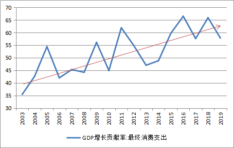 消费对经济增长的贡献率稳步提升 数据来源:WIND