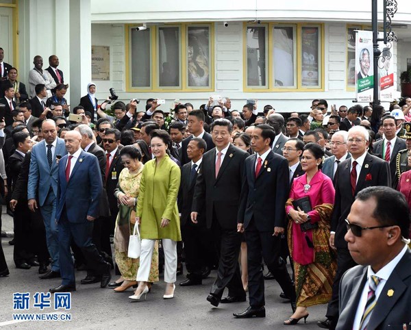 习近平同亚非领导人万隆“历史性步行”