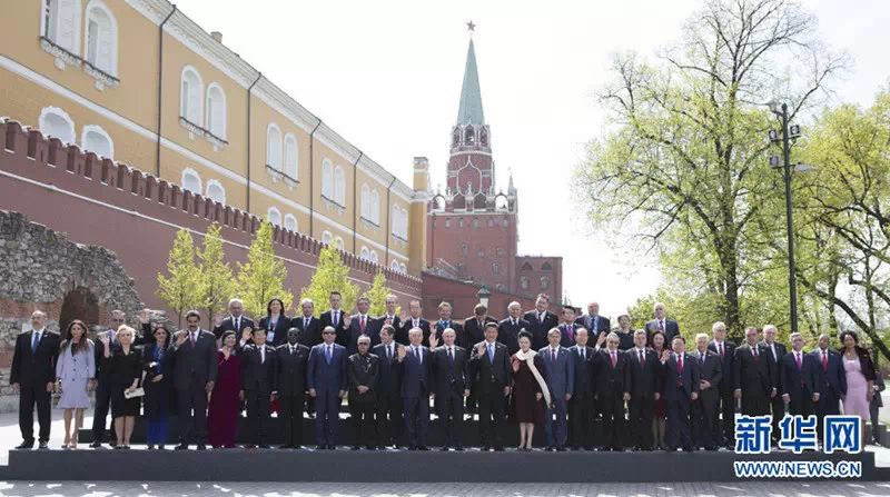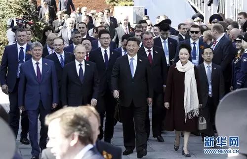 当天一早,普京总统在克里姆林宫迎候了约20个国家和地区及国际组织的领导人,习主席和夫人彭丽媛是最后抵达的贵宾。外交礼仪中,显而易见,“压轴出场”的客人当然是最重要的客人。