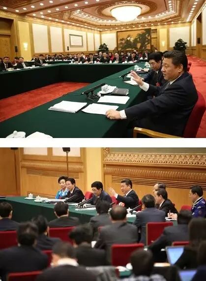 习近平边听边记并不时提问,最后作了重要讲话。习近平表示,完全赞成全国人大常委会工作报告。习近平在肯定吉林一年来工作后指出,要适应经济发展新常态,深入推进东北老工业基地振兴,抓住创新驱动发展和产业优化升级,努力形成特色新兴产业集群,形成具有持续竞争力和支撑力的产业体系,通过深化改革坚决破除体制性障碍,把老工业基地蕴藏的巨大活力激发出来、释放出来。要加快推进现代农业建设,在一些地区率先实现农业现代化,突出抓好加快建设现代农业产业体系、现代农业生产体系、现代农业经营体系3个重点。民生工作离老百姓最近,同老百姓生活最密切。要持之以恒把民生工作抓好,发扬钉钉子精神,有坚持不懈的韧劲,一件事情接着一件事情办,一年接着一年干,锲而不舍向前走,做到件件有着落、事事有回音, 让群众看到变化、得到实惠 。