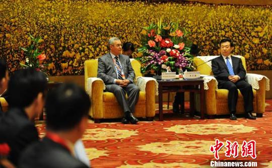 5月27日傍晚,甘肃省委书记王三运会见参加“亚洲合作(ACD)对话丝绸之路务实合作论坛”的来自土耳其、菲律宾、塔吉克斯坦等33个亚洲合作对话成员国高级官员和国家有关部委负责人。 杨艳敏 摄