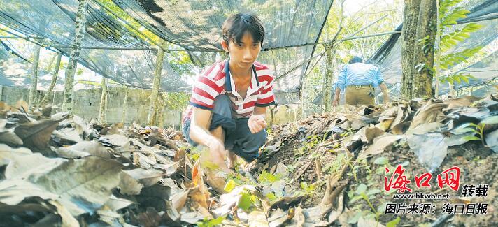 王昌黄所在的龙桥镇属海口羊山地区,去年,在中国热科院专家的支持下,龙桥镇积极探索发展林下种植食用菌产业,建立食用菌实验基地,将20户脱贫户纳入其中,收益按照多劳多得进行分配,王昌黄便是其中的一个。4月8日上午,龙桥镇永东村委会食用菌实验基地内,一垄垄竹荪排列整齐,“听专家说,食用菌效益好、门槛低,我挺感兴趣的。”王昌黄一边除草一边告诉记者,食用菌实验基地是村干部提供的自家宅基地,食用菌菌种由合作社出资购买,他想尽一份力,为此,他每天都会到基地打理。