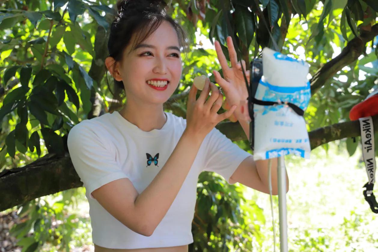 (抖音大V“丸子萱”向网友介绍海口火山荔枝)