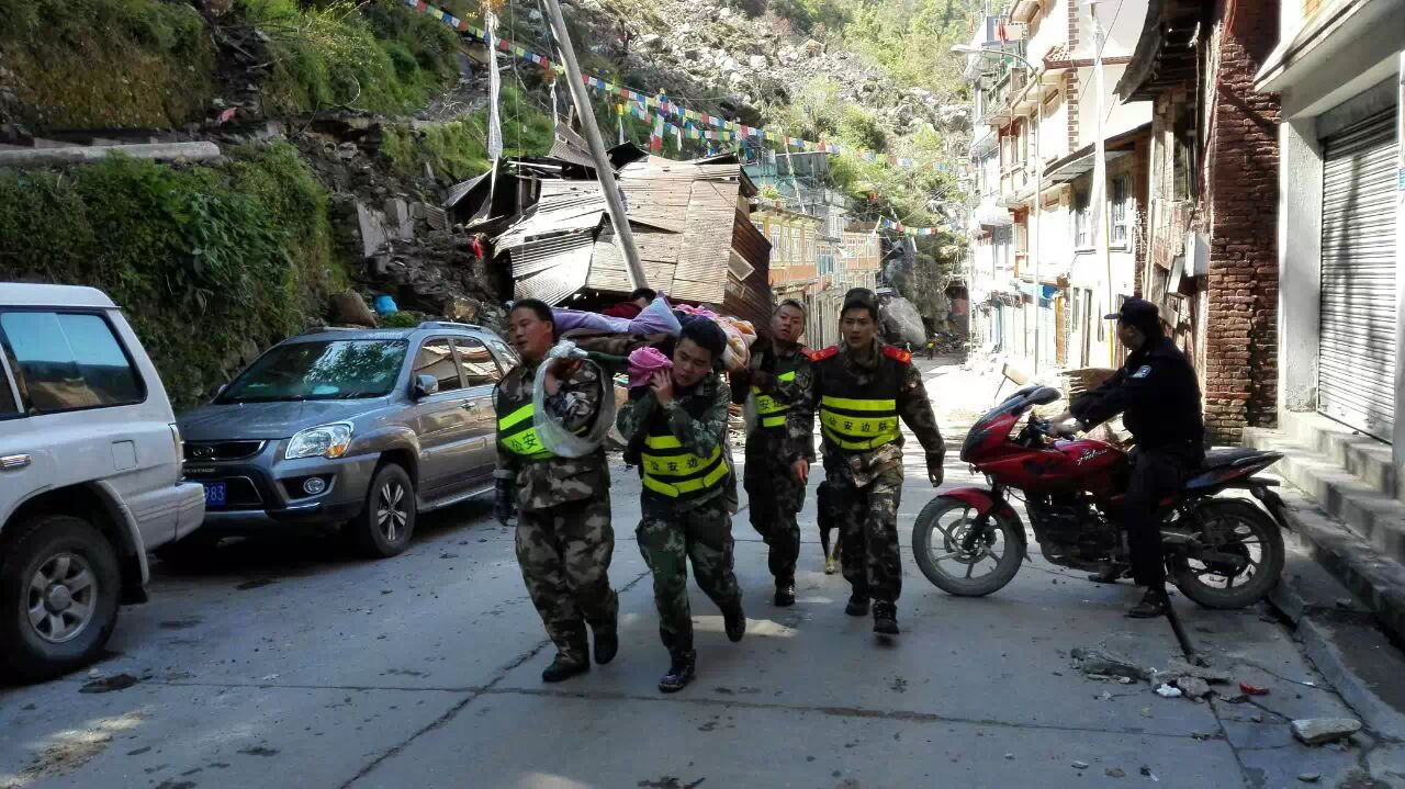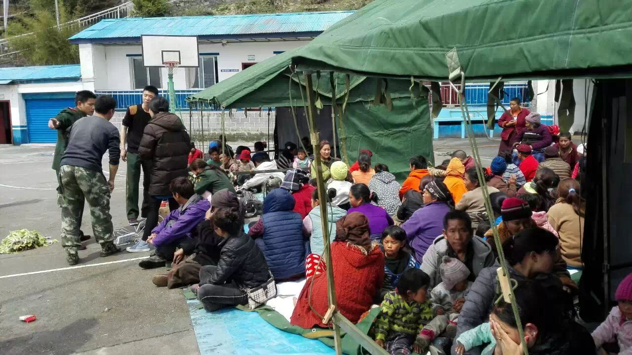 夏尔巴人村庄立新村,紧邻318国道,距樟木口岸上山8公里。4.25地震后,立新村群众被困山上120小时。在震区一线的五个日夜,感动着大难之中的大爱。区党委宣传部(外宣办)驻立新社区工作队与驻地官兵心系数百名鲜活生命,在外援无法进驻的关键时刻,主动担当,第一时间安置救护群众,成立抗震救灾协调小组,把立新受灾情况报送出去,确保了立新片区无一人伤亡和后勤保障工作安全有序。“我们共安置了548名群众,其中收留了93名滞留在立新的尼泊尔人。”立新边防派出所所长朱智敏告诉我们,“我们所里方刚和杨健的新婚妻子本来是到立新度婚假的,没想到遭遇了大地震。她们两位都是学医出身,承担了医疗救援组的重任。”