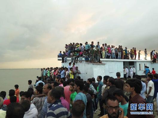 8月4日,在孟加拉国首都达卡,人们在事发河段的岸边围观。孟加拉国一艘渡轮4日在首都达卡附近的帕德玛河沉没,船上载有约200名乘客。当地警方说,目前已经发现2具女性尸体,约110人脱险,但仍有约100人下落不明。