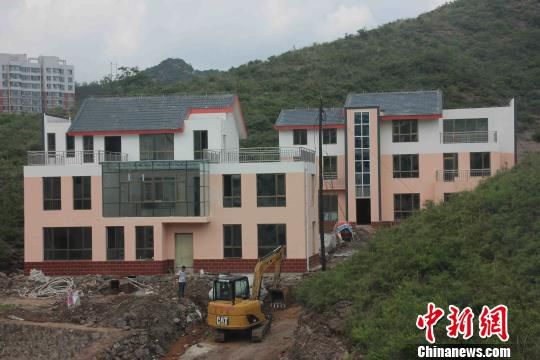 66岁的石洞子沟村村民陈广志,居住在村里建设的新泰福瑞家园小区中,从他居住的房屋的窗户里就可以看到正在建设的两栋别墅。穿过小区内的一条小路,就能直接到达这两栋别墅。