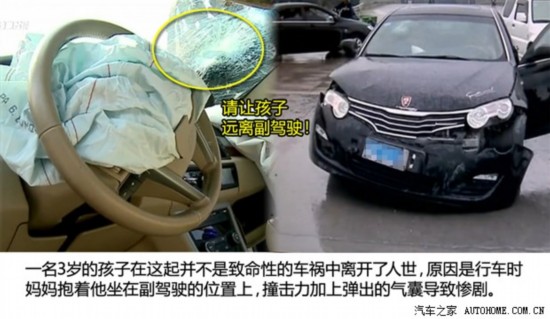 事故1: 2013年11月24日,在温州某道路上,一个妈妈抱着一名3岁的孩子坐在副驾驶,爸爸开车,不料在行驶中与其他车辆发生碰撞,气囊弹出,最终导致孩子不幸身亡。