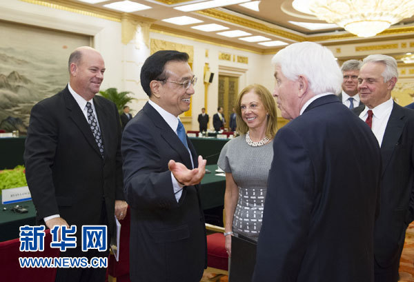 李克强会见出席第六轮中美工商领袖和前高官对话的美方代表并座谈