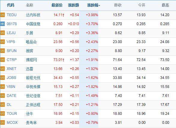 其中,达内科技涨3.98%,中国信息涨3.7%,乐居涨3.36%。