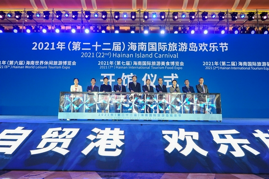 12月10日上午,2021年(第六届)海南世界休闲旅游博览会、2021年(第七届)海南国际旅游美食博览会、2021年(第二届)海南国际旅游装备博览会(以下简称“三大展会”)开馆仪式在海口市海南国际会议展览中心举行。作为欢乐节主体活动的三大展会率先开馆,吸引了10余个国家和地区、20多个省市以及上千家国内外商协会、企业参展,已经成为集招商、贸易、交流、体验于一体的国际级文旅盛会。三大展会将持续到12月12日。