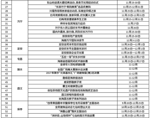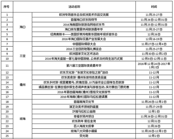 在全省欢乐主题旅游月版块,海南省还将发动全省各市县在欢乐节期间举办各类配套系列活动,设计和推出欢乐节期间的六条主题旅游线路。