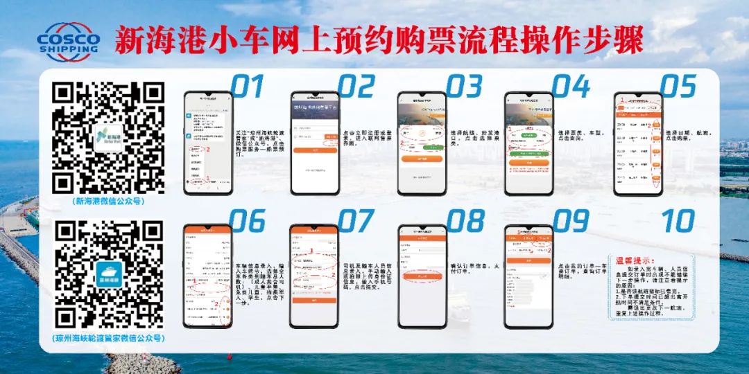海口市交通运输和港航管理局10月7日23时发布温馨提示:受南海热带低压影响,海口新海港、秀英港、铁路南港已停止作业,预计停运将持续到10日白天。请有过海需求的车辆暂不要前往港口,停复航信息将每隔3小时更新一次。详情请关注“琼州海峡轮渡管家”、“铁路轮渡”微信公众号,或者收听FM100海南交通广播和FM95.4海口旅游交通广播。通航后请预约购票,凭票进港。秀英港、新海港客服热线:9693666,铁路南港客服热线:31686888,市民热线12345。