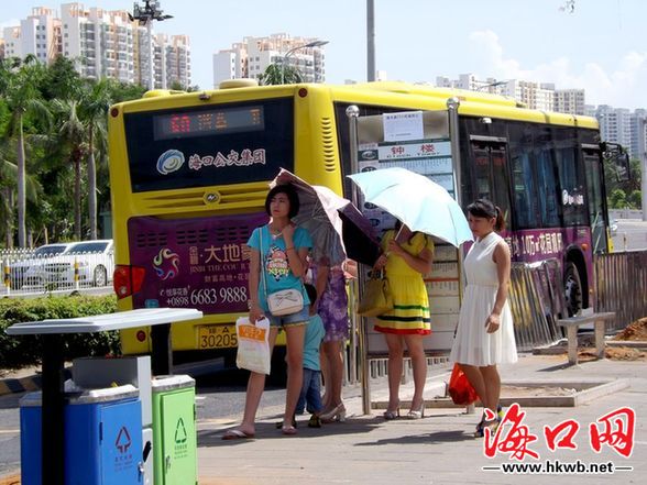 海口公交站设施恢复缓慢 市民日晒雨淋候车