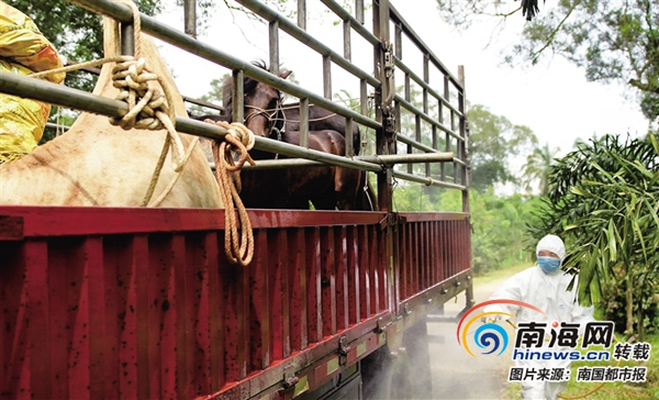 “路上要一个多小时,车上配有兽医和饲养员。”海南热带野生动植物园相关负责人陈有为表示,卡车驾驶室有一扇门跟车厢相连,工作人员可随时开门查看动物的身体状况。为给动物们降温避暑,工作人员在路上专门用高压水枪喷淋冰水,动物们的状态很好。