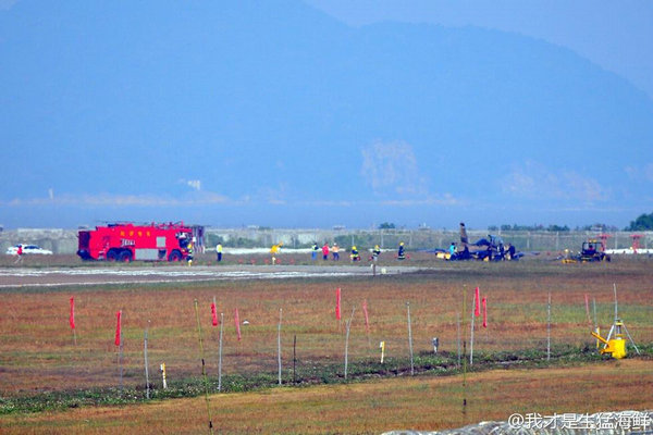 外国空军1架飞机在珠海冲出跑道 现场曝光