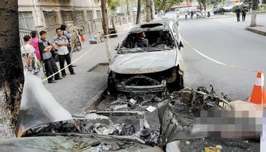 甘肃一轿车起火致5人被活活烧死 车辆烧成空架子
