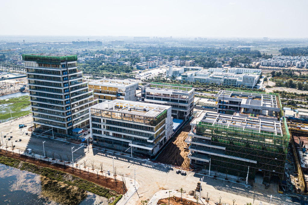 2021年11月13日,海口江东新区一个基于环保理念设计的项目正在建设。新华社记者蒲晓旭摄