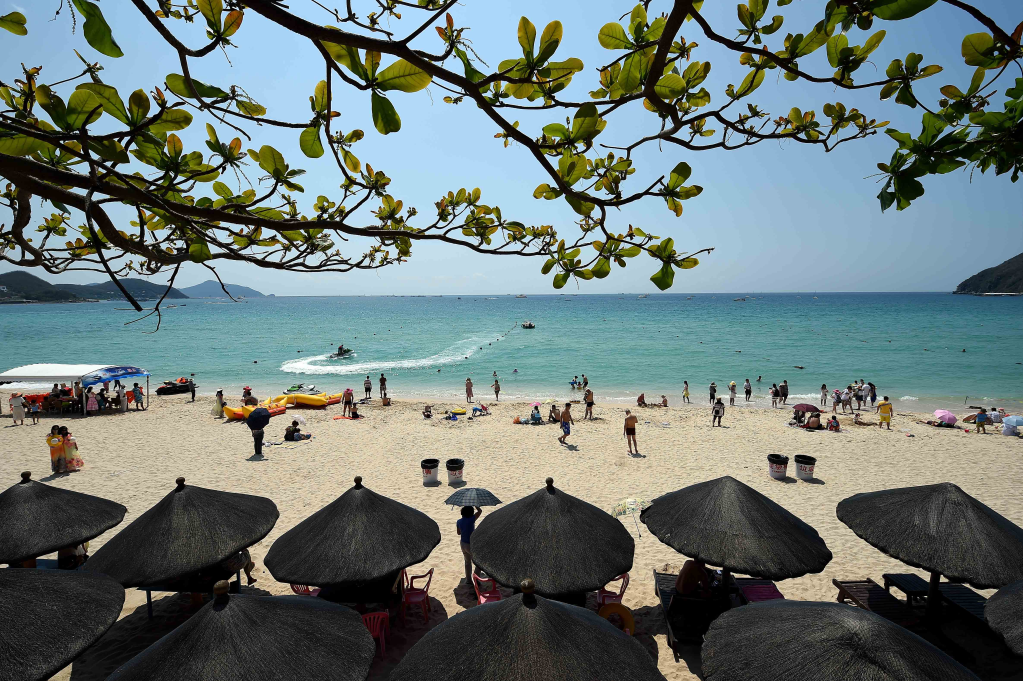 2020年10月6日,游客在三亚市大东海游玩。新华社记者郭程摄