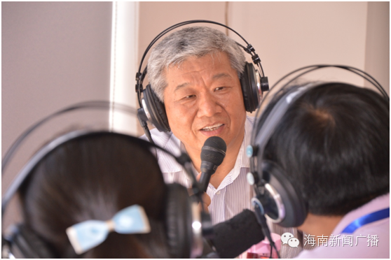 22日上午,海南省农村信用社联合社理事长吴伟雄来到海南新闻广播设在农博城的直播间接受采访。
