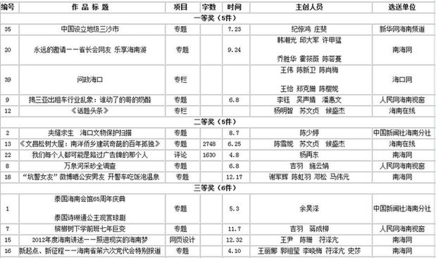 第二十三届海南新闻奖(网络新闻)定评作品目录