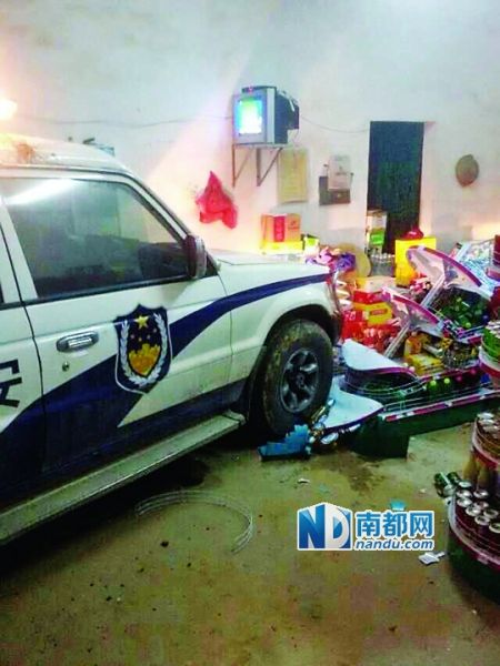 警车撞进小卖部致1死2伤 村民疑司机酒驾(图)