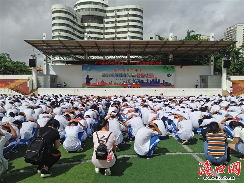 海口网9月18日消息(记者黄晖 通讯员王聘钊)为增强广大市民的国防意识,提高师生的自救能力,9月18日上午,海口美兰区“9.18”防空警报试鸣演练在海口市第二中学举行。