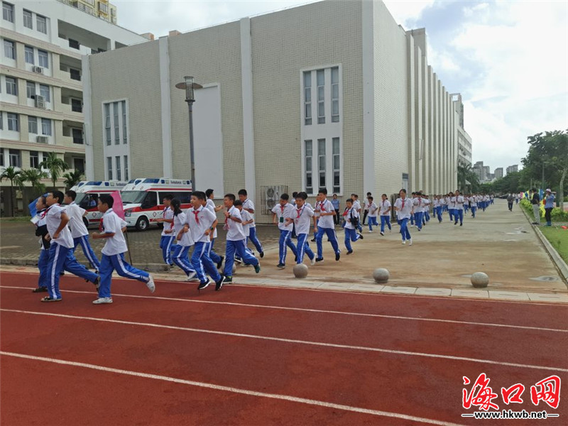 据介绍,此次演练程序共分为三个阶段:10时至10时3分发出预先警报,10时8分至11分发放空袭警报,10时16分至19分发放解除警报。18日上午10时,警报声响起。海口网(微信号:haikouwang2013)记者在第二中学的操场看到,随着警报声的响起,初一年级和高一年级班级的老师组织各班学生从教学楼内有序、快速疏散跑到学校操场。不一会儿,全体参演师生已在操场集结完毕。空袭警报响起后,各班班主任指挥学生们双手护头,演练空袭中以防被砸。在听到解除警报发出后,各班开始组织撤离集合场地,防空警报试鸣演练圆满结束。